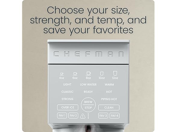 - YOUR FAVORITE MORNING CUP: This coffee maker machine comes equipped with touch controls to program your ideal size, brew strength, or coffee temperature. Program in your preference with one of four Favorite buttons for a quick and easy one-touch morning cup.