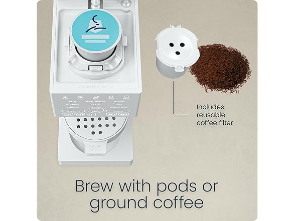 - COMPATIBLE WITH COFFEE PODS: Whether you prefer the ease of coffee pods or like your own freshly ground coffee, the Caffeinator has you covered. The reusable coffee filter accommodates the perfect amount for a single cup of joe.
