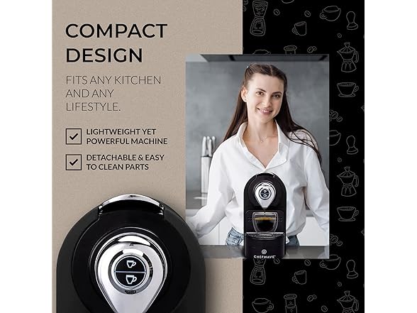 - Compact and Energy-saving : Lightweight, mini, instant pod coffee machine, takes up very little room on the countertop. Machine will turn off to save energy with the automatic 2-hour shut off and standby mode.