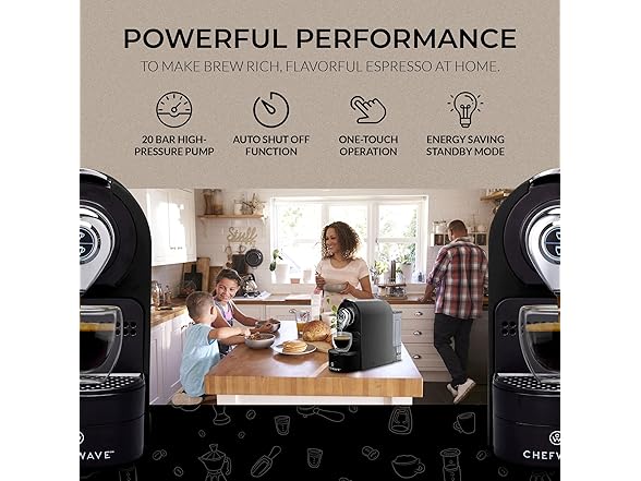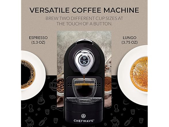 - Barista-Style Italian Capsule Espresso Machine: Features high quality Italian 20 bar pressure pump. Brew rich, flavorful, consistent and delicious cup of coffee at a touch of a button. 2 programmable brew sizes: Espresso (1.3 oz) or Lungo (3.75 oz).