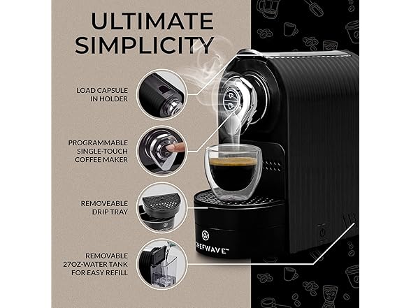 - Compatible with Nespresso Original Line Capsules: Designed for use with the Original Line Nespresso capsules or any other branded capsules. The Kava is equipped with a fast heat-up system that reaches the ideal temperature in under 30 seconds!