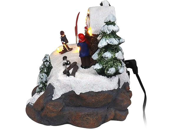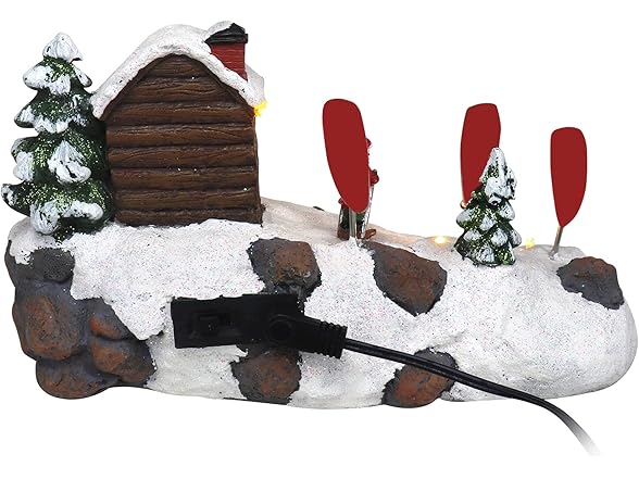 - RESIN - This Animated Christmas Village Ski Down the Mountain is made from high-quality resin materials and is meticulously hand-crafted and hand-painted by skilled artisans. This Realistic Christmas Village Figure, an ideal complement to any Christmas Village Houses display, is built to last and will be a treasured part of your Christmas Decorations for years to come.