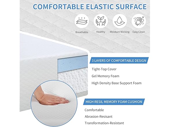 CL.HPAHKL 12 inch Gel Memory Foam Mattress Comfort Queen Mattress Medium Firm Mattresses Bed-in-a-Box CertiPUR-US Certified for Cool Sleep & Pressure Relief, White