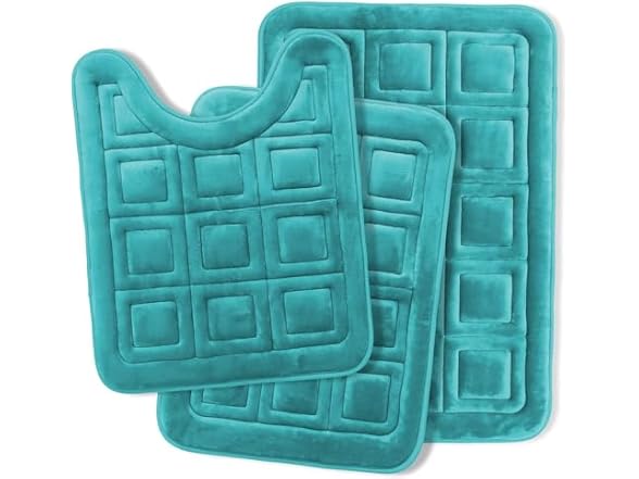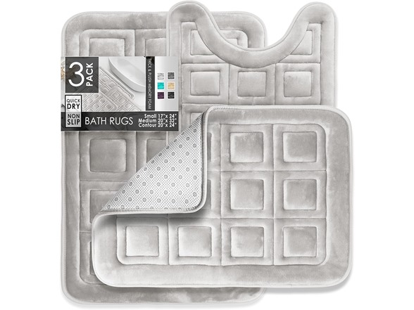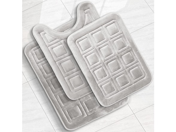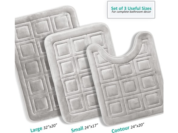 Clara Clark Set of 3 Bath Mats, Non-Slip Velvet Memory Foam Bathroom Rugs, Machine Wash, Soft and Plush Bath Rugs, 17 x 24 Inch, 20 x 32 Inch & U-Shaped 20 x 24 Inch