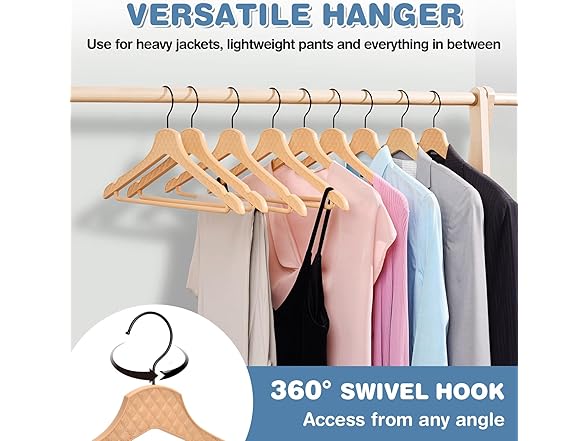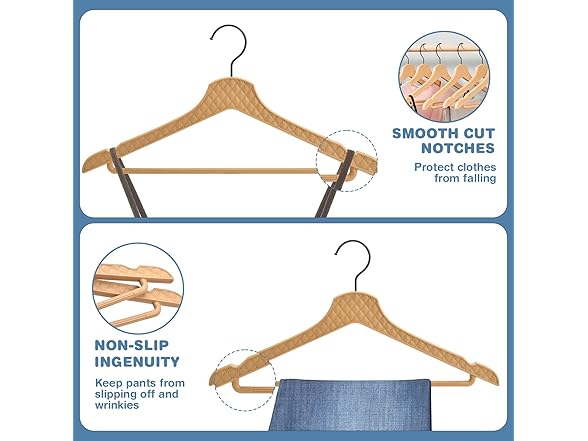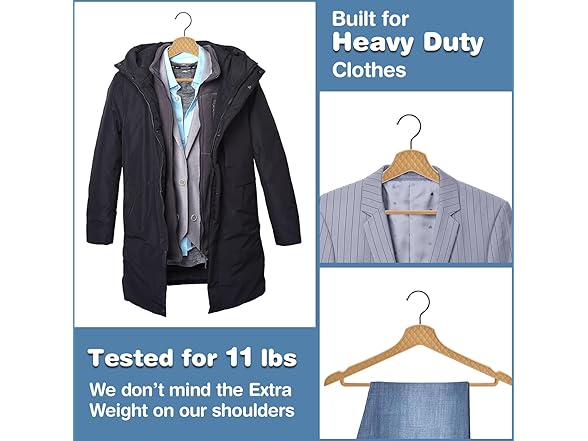- 👚【CROSS-GRAIN HANGING BAR DESIGN】This heavy duty hanger has a horizontal bar design on the lever that hangs the trousers, so that the suit trousers will hang across the bar without visible creases. A single hanger can hold up to 11lb (5kg) of clothing, making it easy to store a full suit or heavier leather jackets or coats. Freshly washed wet clothes can also be dried using this hanger