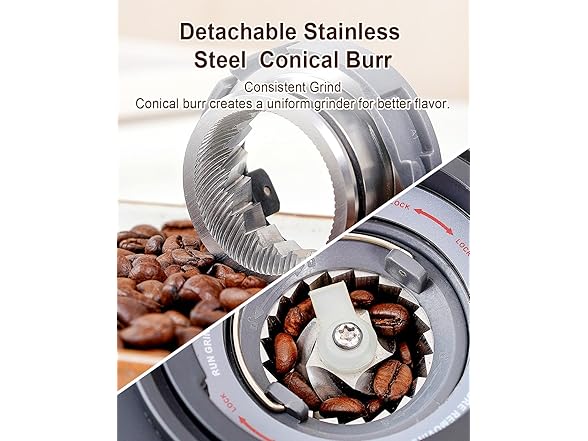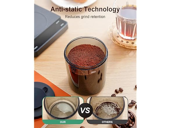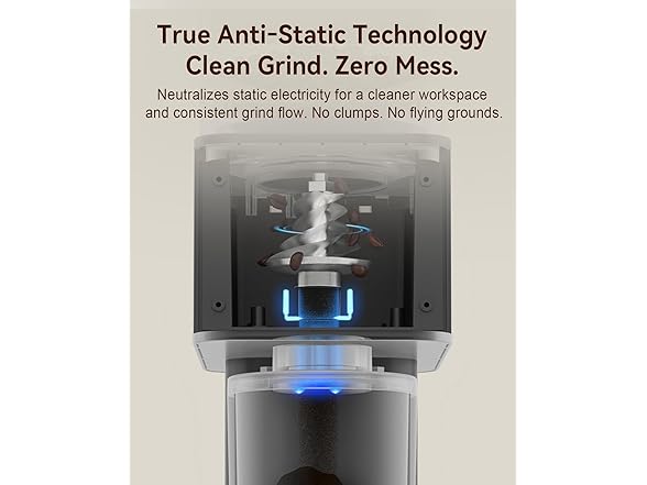 - ☕【Innovative Anti-static Technology】Prevents coffee grounds from flying around and keeps your workspace clean. The coffee grinder operates quietly, offering a smooth and noise-reduced grinding experience. And removable upper burr, hopper, and chamber, easy to clean