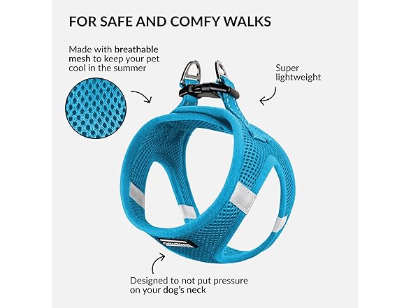 - PERFECT FOR DAILY WALKS - Made with soft, breathable air mesh, this lightweight dog vest is perfect for year-round walks. The breathable mesh fabric keeps your pet cool and reduces neck pressure compared to collars. It's also easy to carry due to its lightweight design.