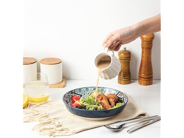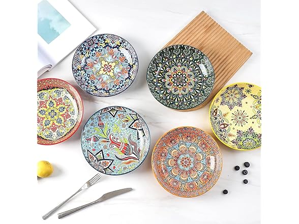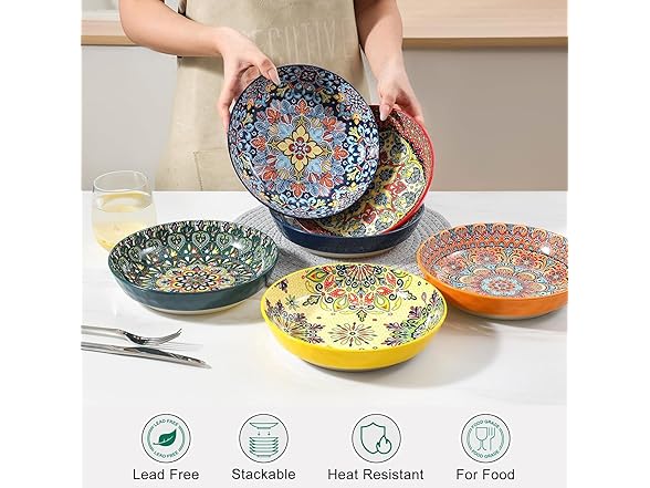 - 【PERFECT GIFT FOR LOVED ONES】 Give these decorative, boho-style ceramic bowls as a thoughtful gift for family meals, holiday feasts, or housewarming parties. With their colorful design and generous size, they are perfect for pasta, soup, or salad, making them a great addition to any dish set for 4.