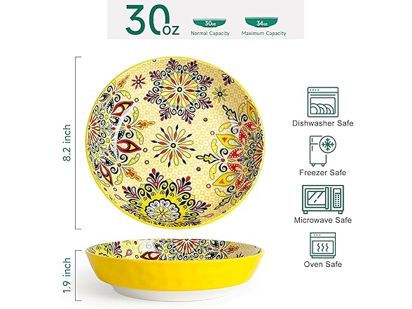- 【PERFECT SIZE FOR FAMILY MEALS】 With a generous 30 oz capacity, these wide, shallow bowls are perfect for pasta, salads, soups, or hearty dishes for 3-4 people. Ideal for family gatherings, holiday feasts, or casual meals, they make every meal special, from homemade recipes to festive spreads.