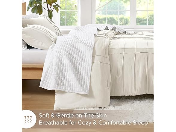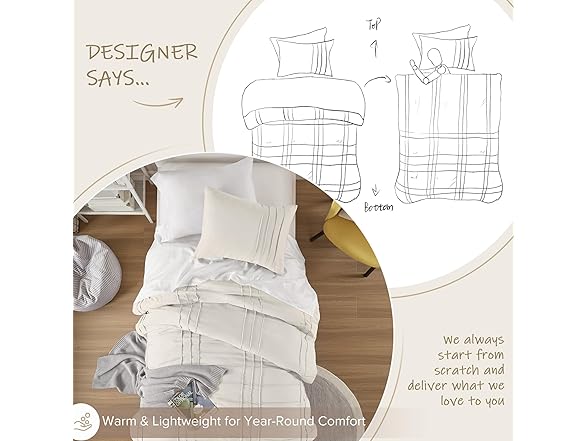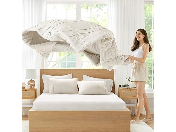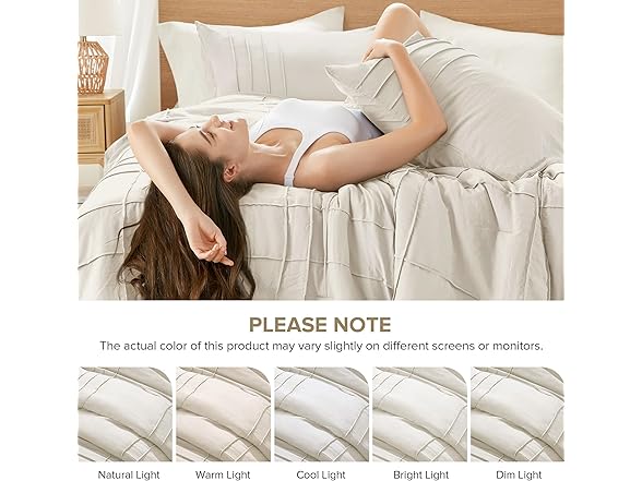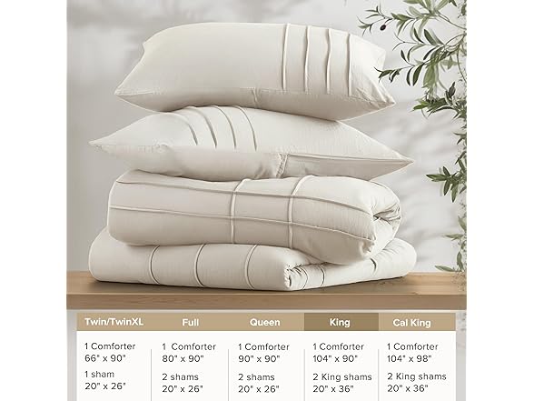 Comfort Spaces Cream King Size Comforter Set - 3 Pieces Pintuck Pleated Bedding Sets, All Season Lightweight, Extra Softness Pre-Washed Microfiber King Bed Set, Shams