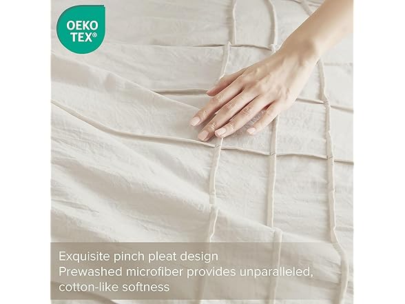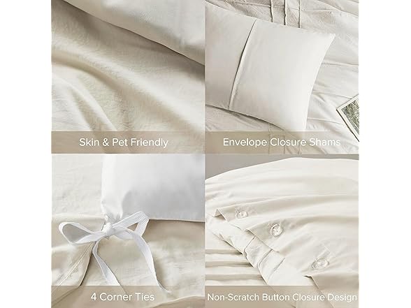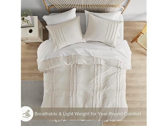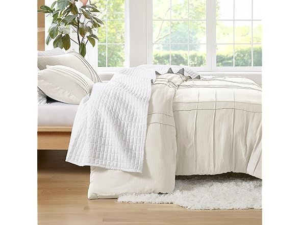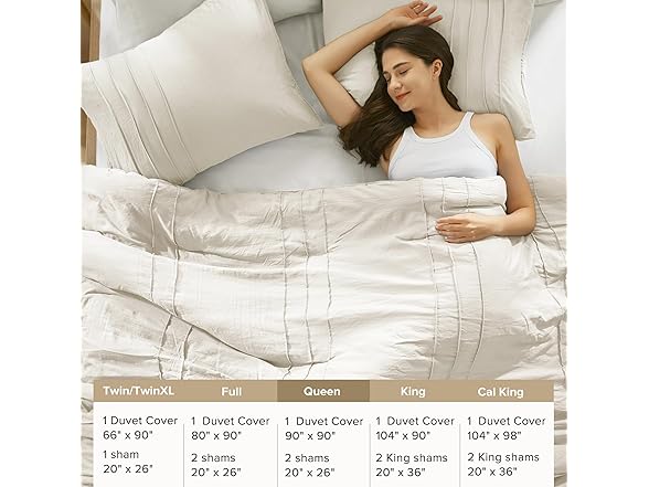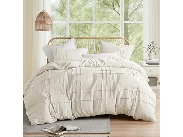 Comfort Spaces Cream Queen Size Duvet Cover Set - 3 Pieces Pintuck Pleated Duvet Cover Queen, All Season Lightweight, Extra Softness Pre-Washed Microfiber Queen Bedding Cover Shams, Full/Queen