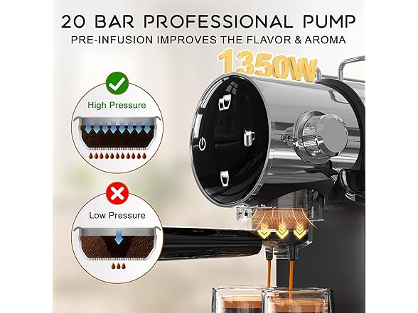 - Perfect creamy milk foam: A perfect cup of espresso deserves perfect milk froth. Espresso machine comes with a milk foam wand help you creates rich, creamy foam every time.