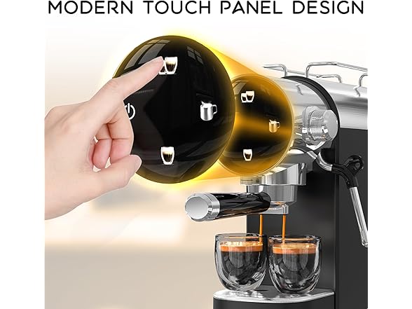 - Compact and stylish: With stainless steel appearance, this espresso machine is an elegant addition to any kitchen. Its compact size makes it ideal for home or office use.