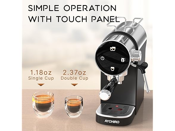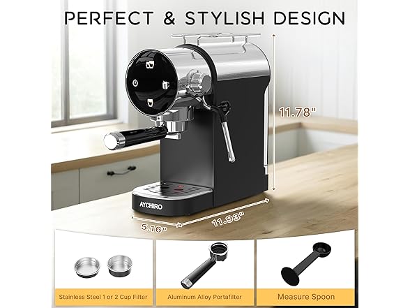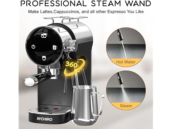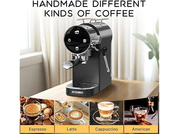 - 20 Bar Pressure System: AYCHIRO espresso maker gives you a great quality extraction, resulting in a richer aroma in your coffee. You can create a cappuccino, latte or flat white at home or in the office with our espresso machine.