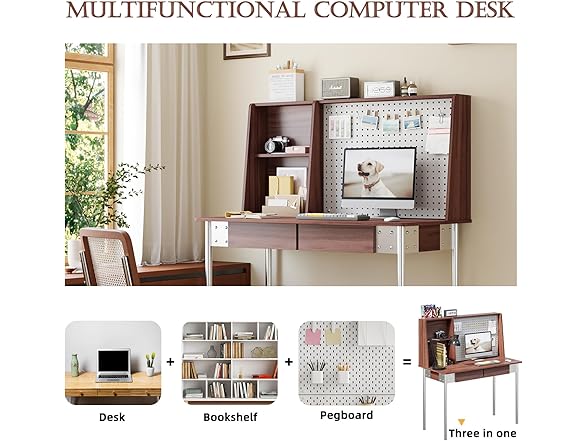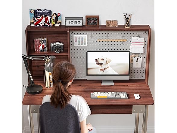 JOMEED Computer Desk with Hutch & DIY Pegboard