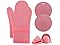 COOK WITH COLOR Silicone Oven Mitts- Heat Resistant Gloves with Soft Quilted Lining Oven Mitt Pot Holders for Cooking and BBQ, Pink, Mitt Set