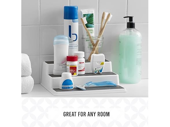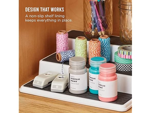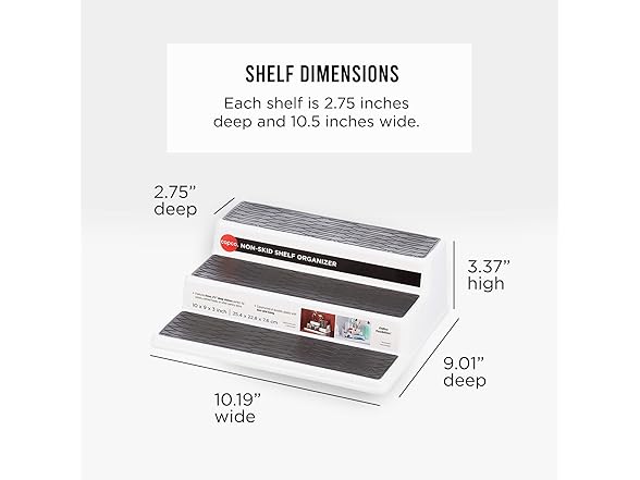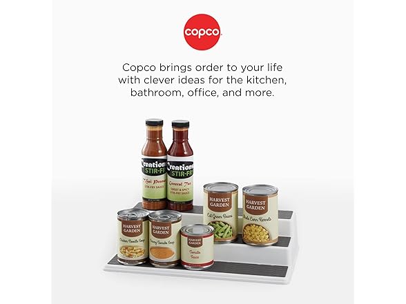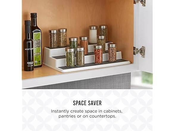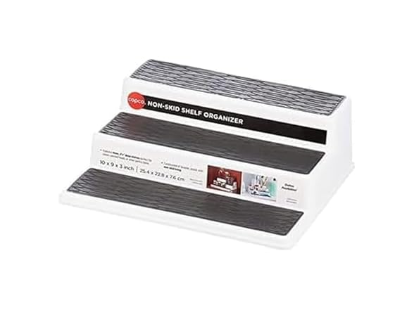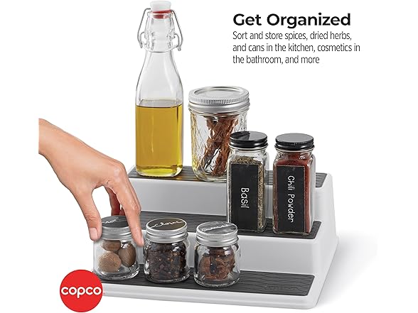 Copco 3-Tier Spice Rack Organizer for Cabinet or Pantry, 10-Inch Non-Skid Tiered Shelf, White/Gray Design Holds Spice Jars, Cans, and Bottles