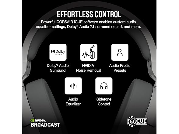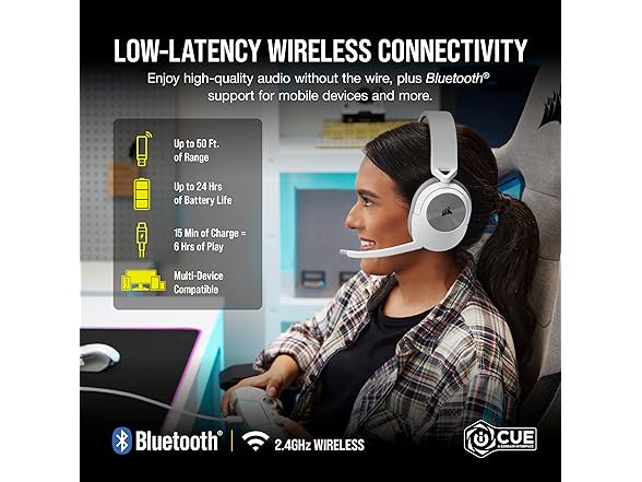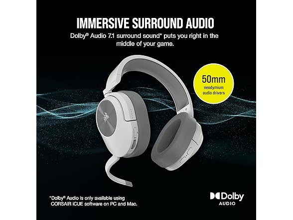 Corsair HS55 Wireless Multiplatform Lightweight Gaming Headset with Bluetooth - Dolby 7.1 Surround Sound - iCUE Compatible - PC, PS5, PS4, Nintendo Switch, Mobile - White