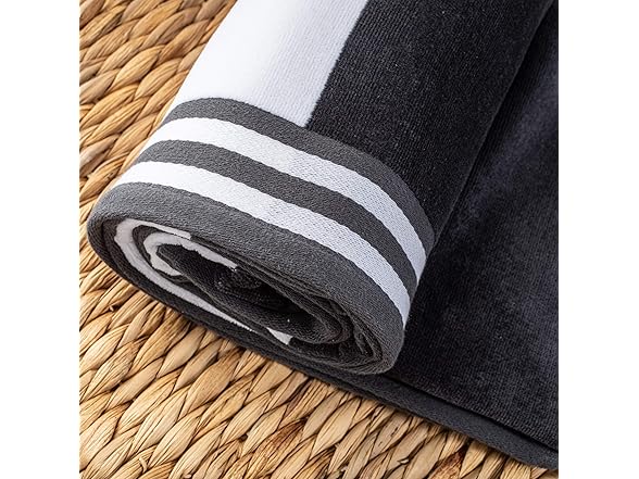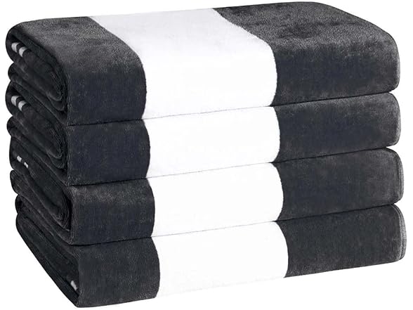 Superior Cotton Striped Beach Towels, Colorful Towels for Adult, Kid, Pool, Swimming, Sand, Travel, Large Oversized, Absorbent, Fast Drying, Bath Basics, Cabana Collection, Set of 4, Charcoal