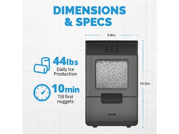 When is an ice maker more than just an appliance? When it provides an endless supply of the perfectly chewable ice that you thought you could only find at Sonic and Chick-fil-A! The Newair Countertop Nugget Ice Maker makes a non-stop supply of the good ice that you crave: clean, pure, and perfectly shaped for crunching on when your drink is gone. Enjoy the convenience of nugget ice in your own home with this feature-packed ice maker that puts an end to refilling ice cube trays for good.