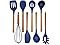 - Set includes 1 ladle, 1 serving and mixing spoon, 1 slotted basting spoon, 1 slotted turner, 1 spoonula, 1 angled spatula, 1 spaghetti server and 1 whisk; Heat resistant up to 450° F. BPA free.