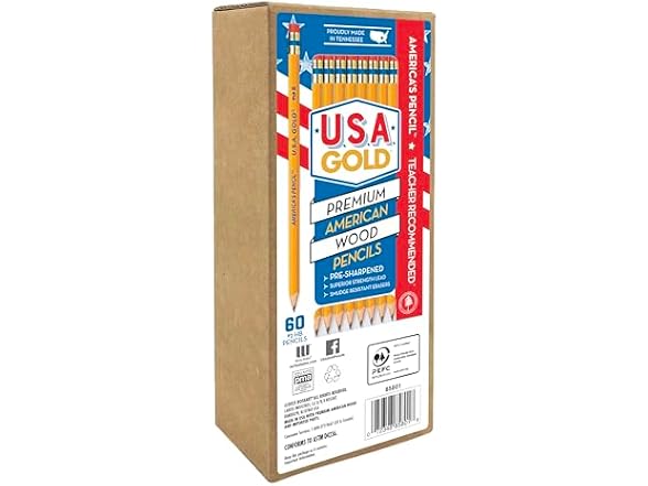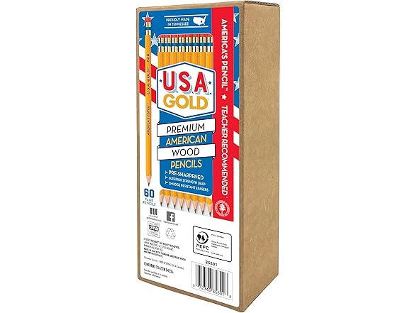 - Superior Point Strength – U.S.A. Gold 60-pack wood case premium #2 HB pencils are made with exclusive graphite core formula providing superior strength lead with even sharpening