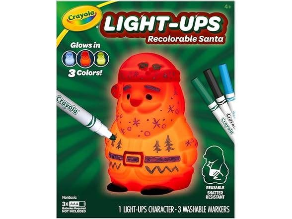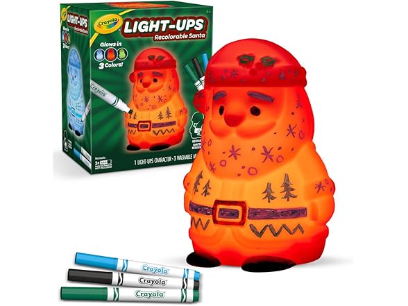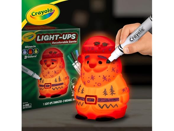 - DECORATE YOUR SANTA: Draw your design, illuminate it, and then wipe with a damp cloth to start anew! Use your favorite Crayola Ultra Clean Washable Markers (sold separately) for even more color options!