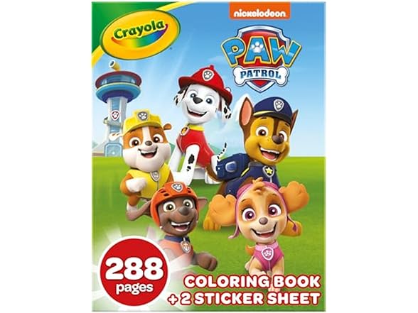 Kids can color their favorite puppy first responders with the crayola paw patrol coloring book, featuring their characters from nickelodeon’s paw patrol this giant coloring book features a whopping 288 pages of art depicting scenes of marshall, rubble, chase and the whole team. Crayola coloring books offer kids pages and pages of line art featuring their favorite characters from the big and small screen to color as they please this book also includes two sheets of stickers to make coloring even more fun makes a great gift, especially when paired with a set of crayola crayons or colored pencils (each sold separately). Ideal for boys, girls or any fans of paw patrol ages 3 and up.