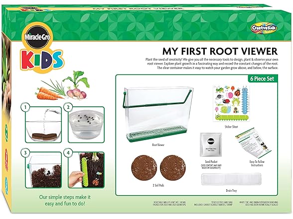 Creative Kids Miracle GRO Root Viewer Garden Kit - Educational STEM Set with Soil & Seeds for Kids Age 6+, Plant Growing Science Lab