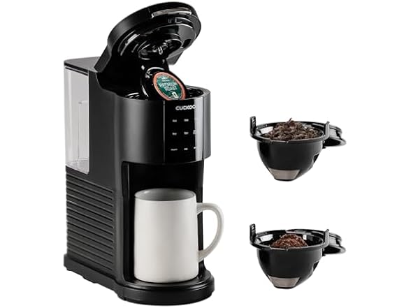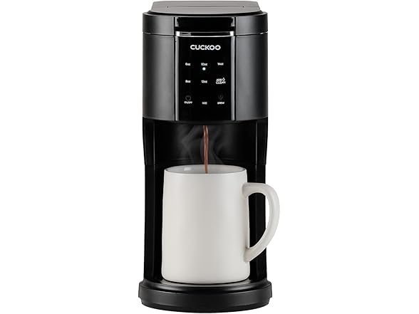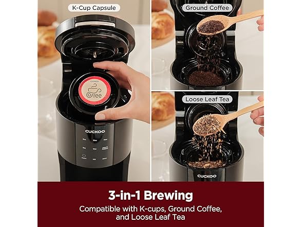 CUCKOO Single Serve Coffee Maker for K-Cup Ground Beans & Loose-Leaf Tea, Versatile 3-in-1 Pod Coffee Maker, Small Single Cup Machine with 5 Sizes and Auto-Clean Mode (CCM-AK011B)