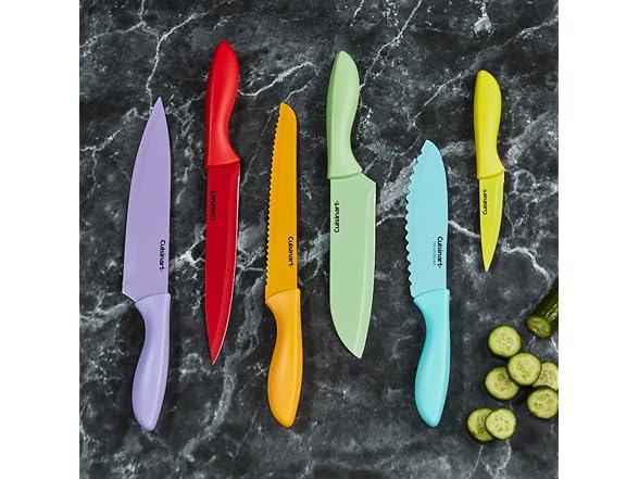 Cuisinart 12-Piece Kitchen Knife Set, Advantage Color Collection with Blade Guards, Multicolored