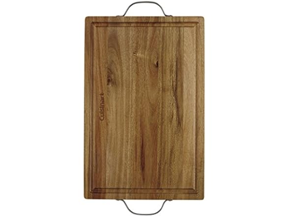 The Cuisinart Specialty Acacia wood cutting board is the perfect combination of form and function. Durable enough to stand up to most vigorous chopping, and attractive enough for serving roasts, cheeses, and sliced fruits or vegetables.