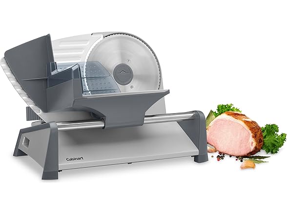 Cuisinart Kitchen Pro Food Slicer, Meat Slicer with Slice Control Knob Adjusts from 1/32" to 1/2" to Slice Bread, Roasts, and Firm Cheeses, Removable 7.5" Stainless Steel Cutting Blade, FS-75, Gray