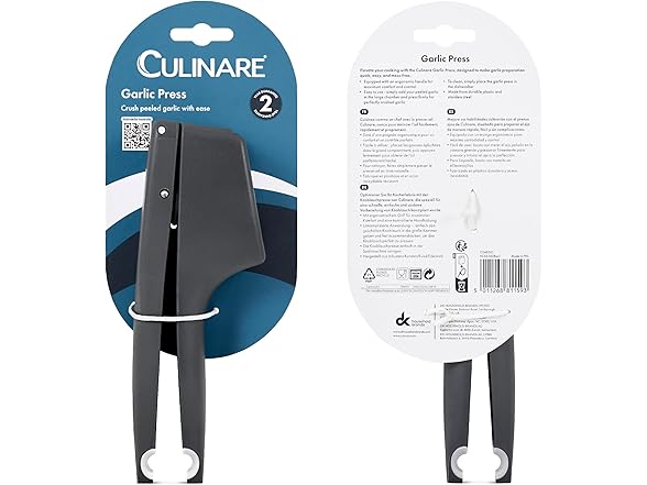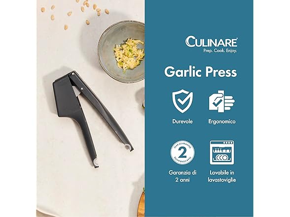Culinare Garlic Press – Ergonomic Garlic Crusher with Large Chamber for Multiple Cloves – Easy to Use Ginger Mincer – Powerful Stainless Steel Crushing Action – Dishwasher Safe