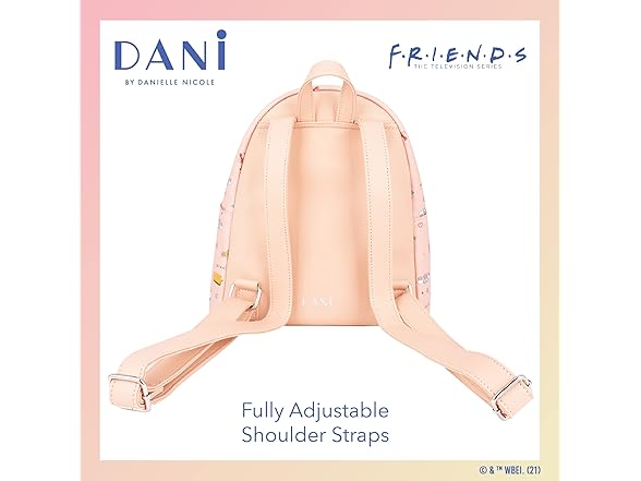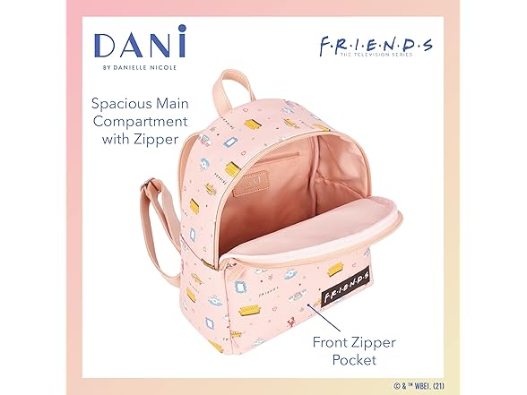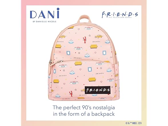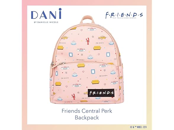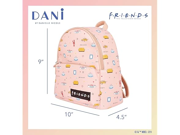 - PREMIUM QUALITY BACKPACK:This exclusive DANI by Danielle Nicole handbag is officially licensed in partnership with Friends; knapsack measures 10" W x 4.5" D x 9 " H.