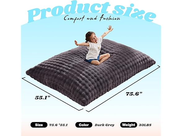 - Memory Foam Bean Bag Chair: The 3-in-1 giant bean bag chair stands out with its high-density memory foam filling, it can bounce back quickly, not only provide comfort but also support. The thickness of the bean bag is up to knees when you lay it down flat.