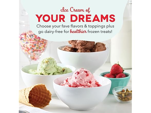 Experience the fun and satisfaction of creating your own frozen treats at home with the Dash Deluxe Gelato & Ice Cream Maker. Whether you crave classic ice cream, rich gelato, or refreshing sorbet, this versatile ice cream machine is designed to bring your dessert dreams to life. With Its generous two-quart capacity, you can make enough for everyone to enjoy, making it the perfect homemade ice cream maker for parties, special occasions, or just a sweet treat after dinner. The one-touch operation makes it an electric ice cream maker that's incredibly easy to use, so you can go from prepping your ingredients to enjoying creamy desserts. This Dash frozen dessert maker features a freeze bowl that ensures quick and even freezing, resulting in smooth, delicious ice cream every time. This no-mess machine is perfect for families, thanks to Its simple assembly, countertop stability, and compact design that fits seamlessly into any kitchen space. Whether you're making a healthy dessert with fresh ingredients or indulging in a rich, decadent treat, this multi-dessert maker gives you complete control over what goes into your bowl. From dairy-free options to classic vanilla and everything in between, the Dash ice cream maker empowers you to experiment with bold flavors and unique combinations. Bring the joy of a classic ice cream maker to your home and delight in the endless possibilities of homemade, customizable desserts for every occasion. We believe that taking small steps every day to live a healthier life can have a big impact. And that the best path to wellness is eating whole, natural foods. At Dash, we make products that make it easier for you to prepare and eat real food at home so that you can feel your best.