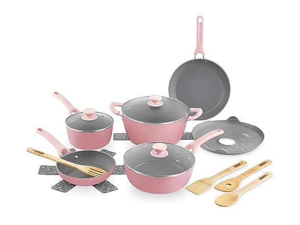 - CONSISTENT COOKING – A healthy cookware set is the upgrade every home chef needs! The unique forged construction creates superior heat retention and distribution for even cooking, every time, and the pink cookware set looks great in any kitchen.