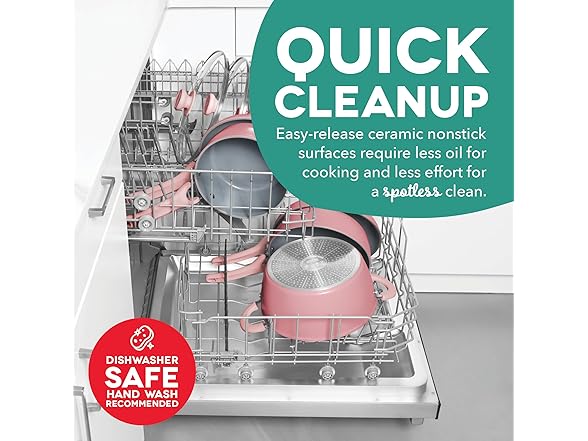 - KITCHEN POTS AND PAN SET – Ceramic cookware set features two layers of Safe Ceramic Nonstick CleanCoating for a durable and long-lasting nonstick experience. It requires less oil for cooking and makes it easy to clean, too.