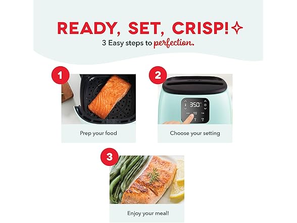 - Compact Yet Mighty: The Dash Digital Tasti-Crisp️ Air Fryer is perfect for single or two-person households who want quick meals, featuring a Removable Crisper Basket for easy-to-clean convenience