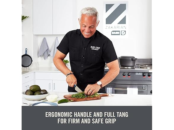- INCLUDES: One Zakarian by Dash Rocking Chef Knife, Sheath, 1 Year Limited Warranty.