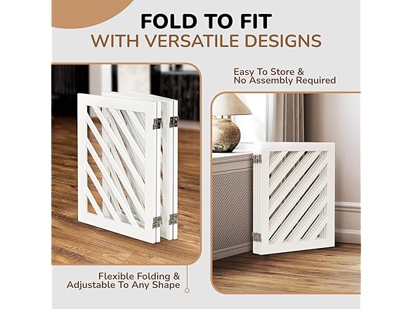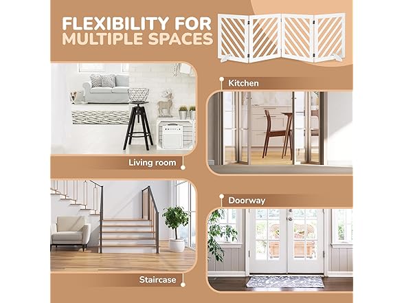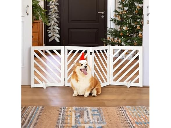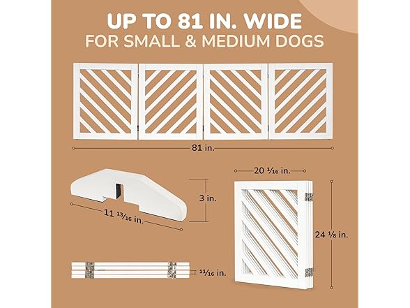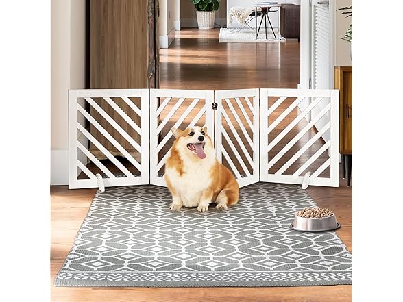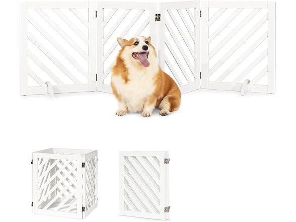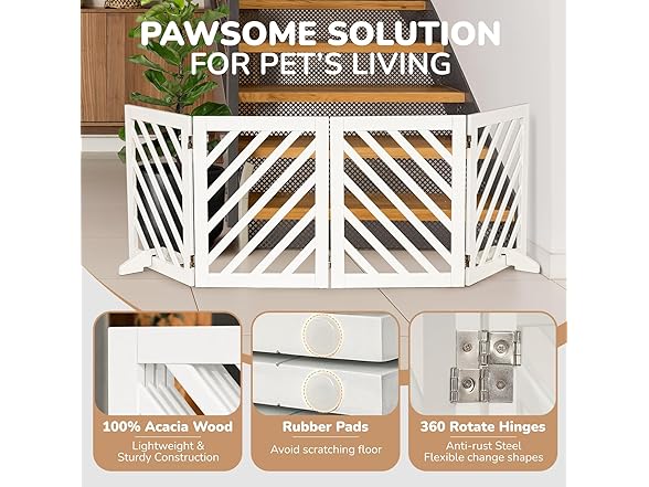 dCee Solid Acacia Wood Dog Gate, Freestanding Dog Gates Indoor Extra Wide 81 in, Foldable Pet Gate with 4 Panels & 2 Support Legs for Doorway, Kitchen, Hall, Stairs White