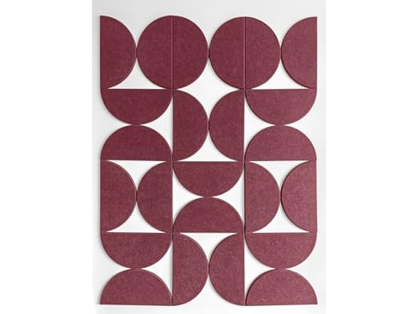 DECORITA Half-Circle Felt Board Tiles, 12 Packs - Self Adhesive Wall Art & Acoustic Panels | Abstract Wall Decor for Home Office | Modern Pinboard - Red Wine