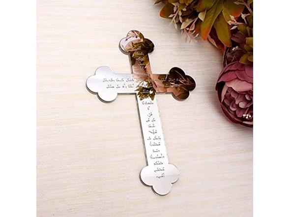Delmitan Acrylic Mirror Cross 6mm Thick The Lord's Prayer for Christening & Baptism House Moving God Bless