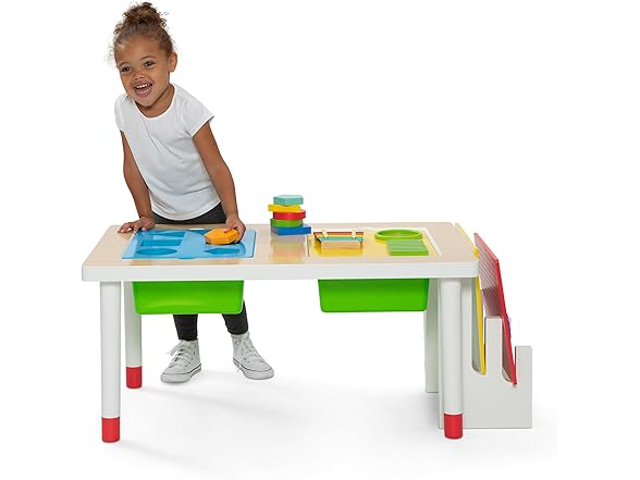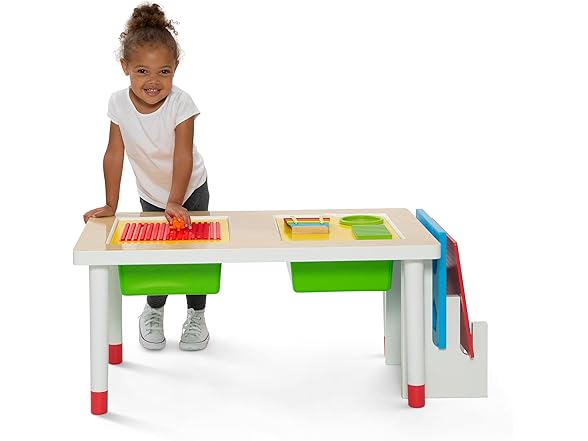 - TONS OF STORAGE: 2 plastic bins hold everything from sand, water, beans, rice, or whatever sensory fun you can imagine | Bins double as storage when not in use | Activity board storage rack on the side keeps unused boards organized and within reach