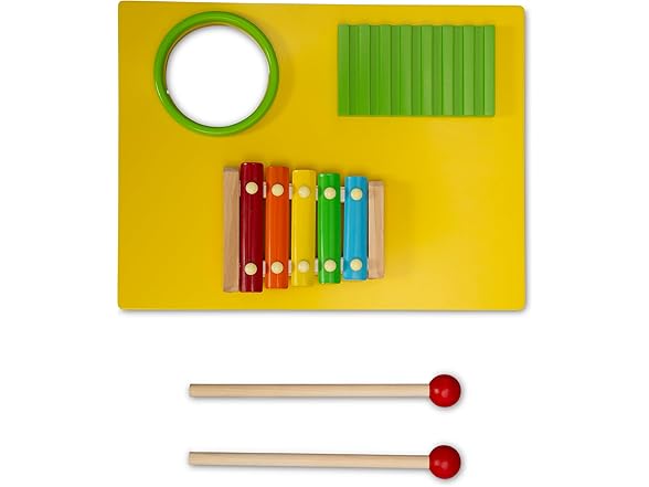 - MUSICAL FUN: Bring out their inner rockstar with the musical instrument activity board | Music board features a xylophone, drum and noise maker