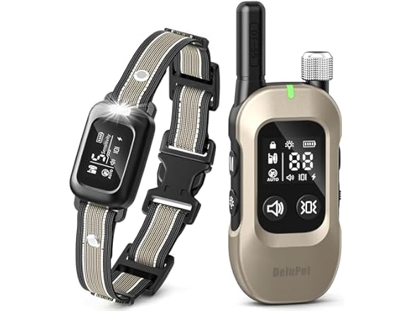 - 4500FT Remote Range - This Delupet bark shock collar reliable control up to 4500FT, perfect for backyards, parks, or open fields, say goodbye to yelling and chasing and train your dog with ease.The anti bark collars for dogs built-in LED flashlight for sos & steady mode, you can easily train or locate your dog during night walks or early mornings, ensuring dog's safe