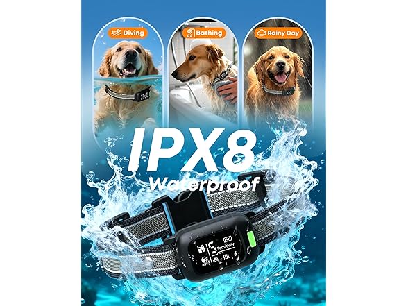 - IPX8 Waterproof & Powerful Battery - Let your puppy play in rain or mud! The IPX8 waterproof shock collar for dogs supports swimming sessions. Delupet dog bark collar with remote enjoy up to 35 days of collar use and 45 days on the remote after a quick 2-hour charge