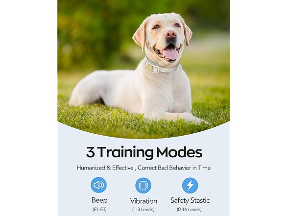 - 3 Humanized Training Modes - Delupet e collar for dogs training has 3 humane training modes: beep (1-3 levels), vibration (1-3 levels), safe static electricity (0-16 levels). It also has a memory function, no need to reset, it is easier to set the correct stimulation level for your pet, effectively and safely eliminate the dog's bad behavior