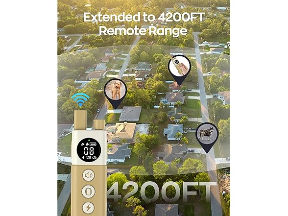 - TRAIN ANYWHERE, ANYTIME - Enjoy reliable control up to 4200FT, this dog shock collar with remote control giving freedom for training in backyards, parks, or on the beach. The built-in LED light ensures you can easily spot your dog during evening walks